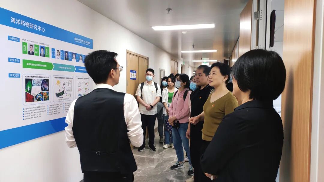 ! U" d8 F) S4 y, F 6月8日,中国科学院海洋研究所实验海洋生物学重点实验室第二党支部来我院开展主题教育活动,进行支部共建座谈。上海药物所所务委员、成果转移转化处处长关树宏,我院副院长周兵、张娟,党委副书记彭启炜,海洋药物研究中心研究员李序文等参加活动。