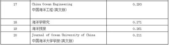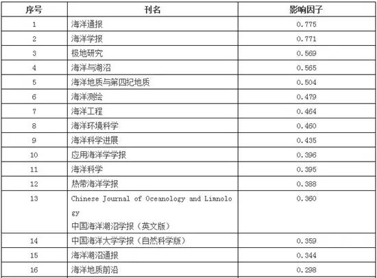 海洋科学类核心期刊影响因子