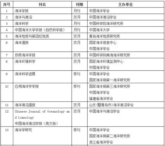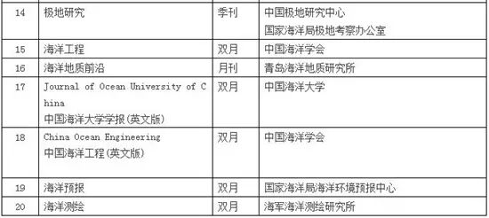 ; i: d% a# n ?/ D, v+ B* q4 {* j 数据来源:《2016年版中国科技期刊引证报告(核心版)》(中国科学技术信息研究所发布) 海洋科学类核心期刊名单(以综合评价排名为序)