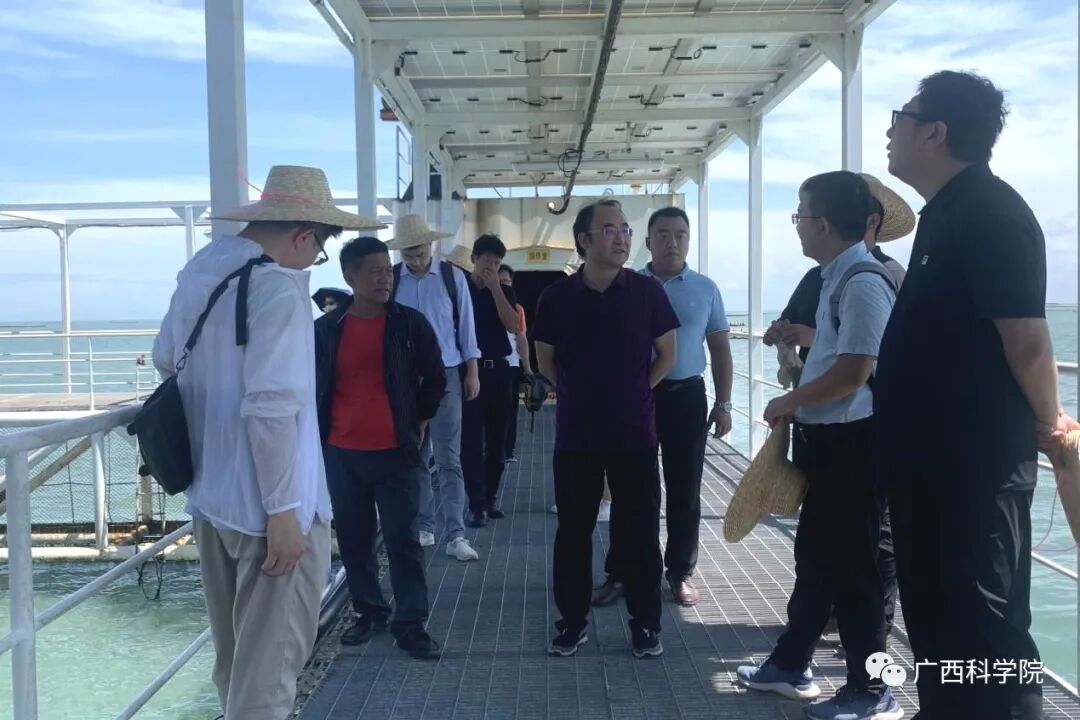 2023年6月19日上午,广西科学院作为2022科技部项目“北部湾陆海接力智慧渔场养殖装备与新模式”牵头单位,院党组书记、院长、项目负责人元昌安率领项目团队前往湛江“海威1号”养殖平台上考察学习,并在平台上召开了项目第一阶段现场推进会。, V+ I0 K: _8 \' q8 ~