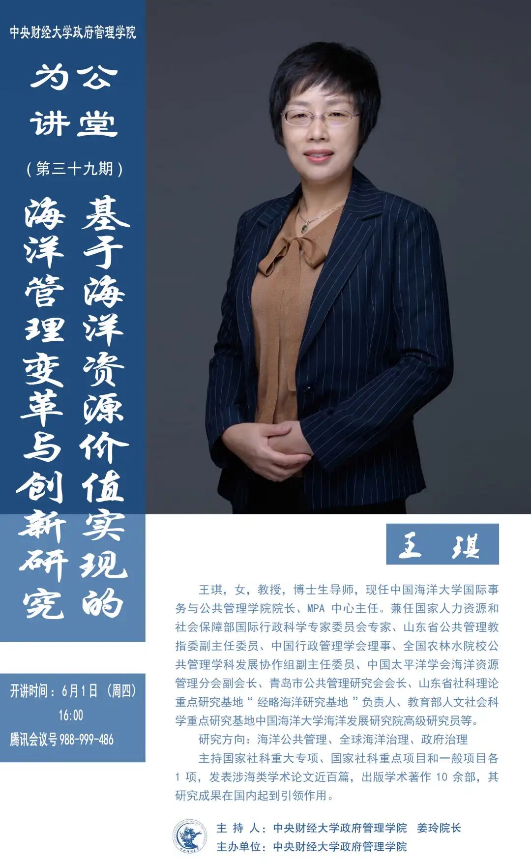 主持人 中央财经大学政府管理学院院长 姜玲教授