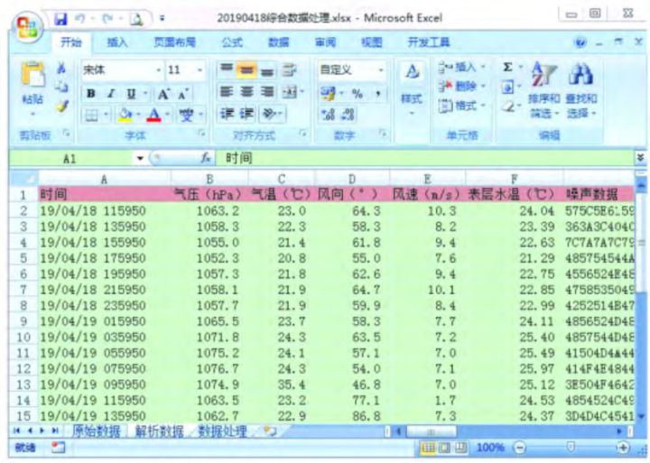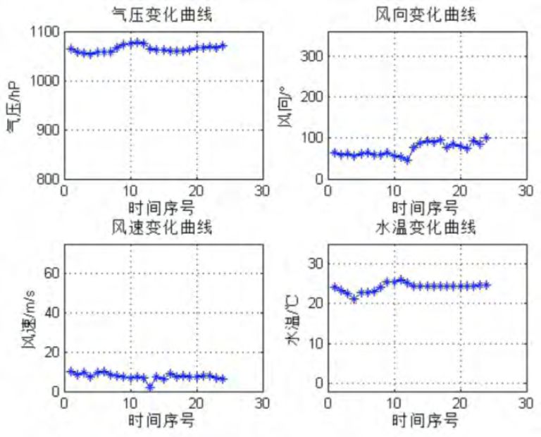 - H0 V. n; W5 u3 t: u 气压、水温、风速、风向等要素采集数据良好,数据处理如图6所示,海洋多要素数据采集系统基本满足设计要求。