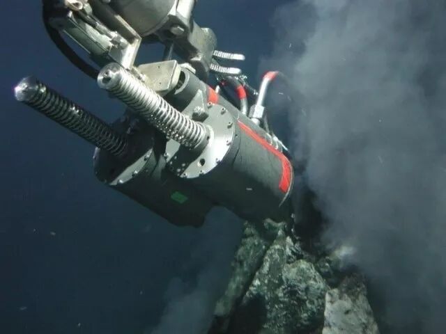 ! O6 T9 K( B! ~: `- @5 | 图1 热液采样器在东太平洋隆起地区热液口进行采样作业
