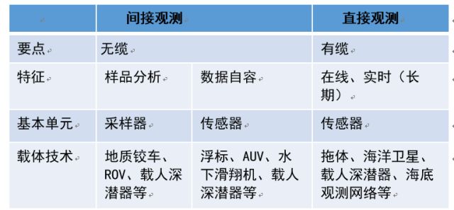 p) K" o& h9 o B; @4 \ 表1 海洋间接观测和海洋直接观测之归纳 9 |' @- c& ~6 [9 J- w