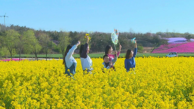 5 ?) Q2 F# F1 O: |7 h) G油菜花、芝樱花争相绽放