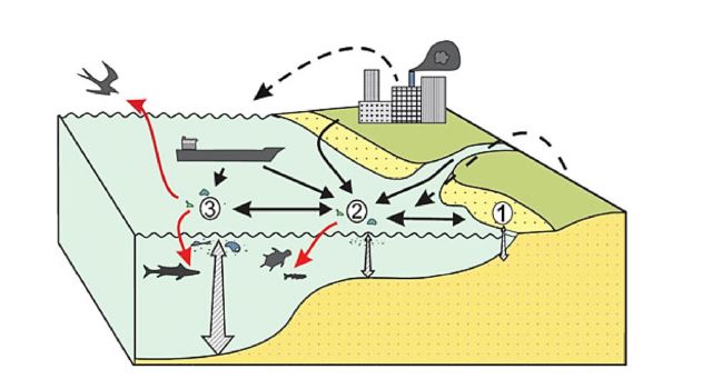 目前学术界对微塑料还没准确的定义,但通常认为粒径小于5毫米的塑料纤维、颗粒或者薄膜即为微塑料,实际上很多微塑料可达微米乃至纳米级,肉眼是不可见的,因此也被形象地比作海洋中的“PM2.5”。 微塑料通常存在于表层海水、海床、沉积物和海滩,甚至出现在最偏远的极地冰川和深海沉积物中。日本东京农工大学教授高田秀重等人研究发现东京湾沉积物中的微塑料浓度远高于海水。目前除南北太平洋、北大西洋、印度洋等大洋沿海大量分布外,南极和北极都发现微塑料的踪迹。科学杂志《地球的未来》上曾刊登文章,研究发现每立方米的北极海冰中含有多达240个微塑料颗粒。可以说,微塑料已经遍布了整个海洋系统。