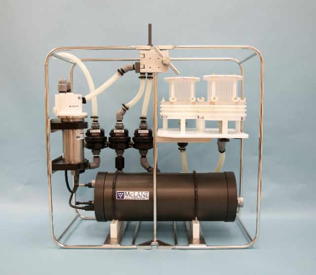 + Z5 e2 q- f$ W, Q2 J$ I) z( o K# A WTS-LV大体积过滤采样系统是由美国Mclane公司生产的一款单次大体积、高容量采样器。它可以采集水体中的悬浮颗粒(微塑料)和溶解性颗粒物。该采样器采用直径为142mm过滤膜双层并行过滤,每层都是独立的。采集目标包括微塑料,微量金属微粒,浮游植物和其他的悬浮颗粒。该设备最高可连续过滤45000L水体。