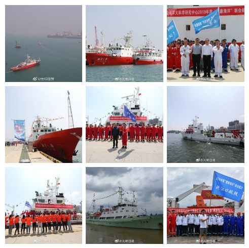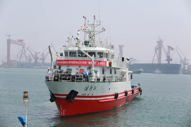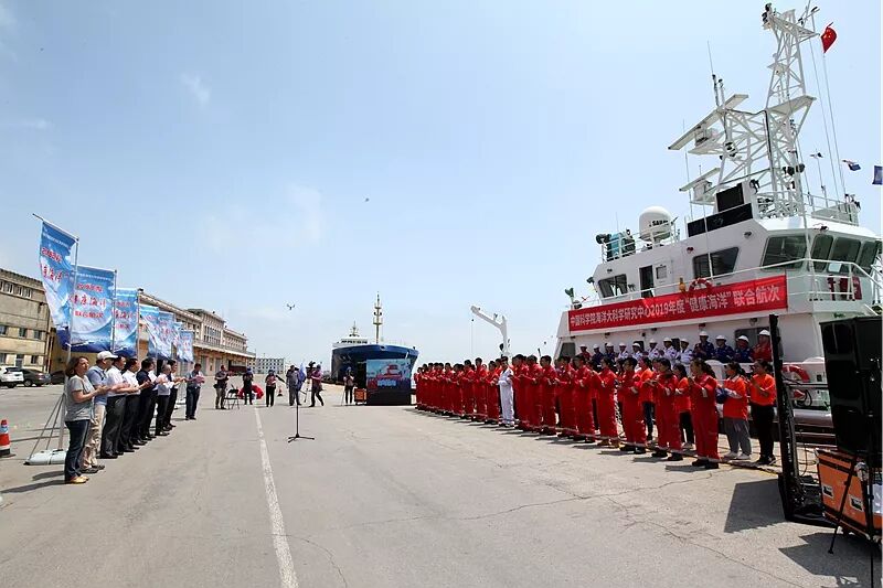 $ S+ }3 {( `7 x3 M1 o 2019年6月10日,中科院海洋大科学研究中心“健康海洋”联合航次正式启动,“创新一”号、“创新二”号和“科学三号”、“实验2”号四艘海洋科考船分别从青岛、烟台与广州同时起航,对渤海、黄海、长江口及珠江口海域开展多学科综合性调查,为开展生态灾害研究、海洋资源开发和生态环境保护、推进近海“健康海洋”示范工程提供数据支撑。来自中科院条件保障与财务局、山东省自然资源厅、山东省生态环境厅等单位的相关领导,以及中科院海洋所、烟台海岸带所、南海海洋所相关工作人员、科考队员等200余人参加启航仪式。 6 n2 w4 D. w. ^+ {