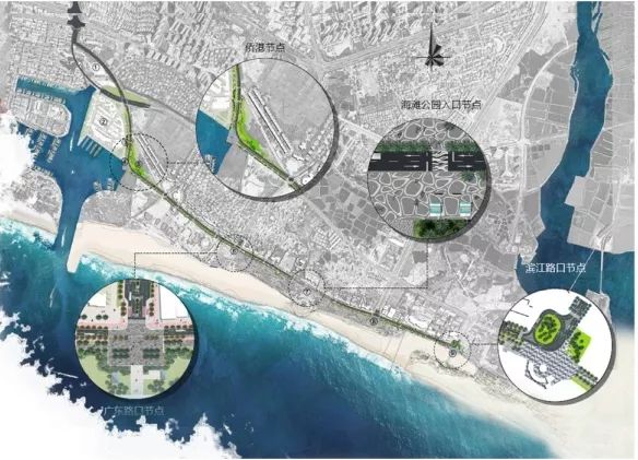 - N; X1 l2 _& n 将四号路重新定位为滨海风情林荫景观慢行道,将海岸与城市公共空间、村落码头系统整合。 : e1 X" z& a" X6 z; p( R5 I