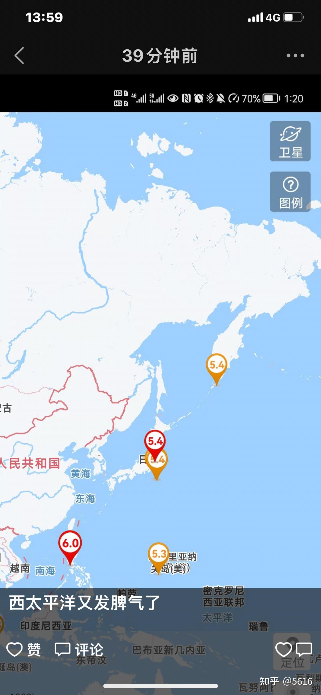 6 ^6 x" [- m9 @5 g# I4 I' N 西太平洋区域属于地壳活动剧烈波动地区,这里也是太阳南北回归循环往复的区域,受此影响,该区域赤道两侧地壳秋冬被拉向南半球,春夏被拉向北半球,因此,在春夏秋冬季节转换过程中,秋冬地震会在南半球太平洋西部区域内频繁发生地震、火山;春夏则会在太平洋西部北半球区域内频繁发生地震、火山。 8 Y" C2 D! ]% P# {
