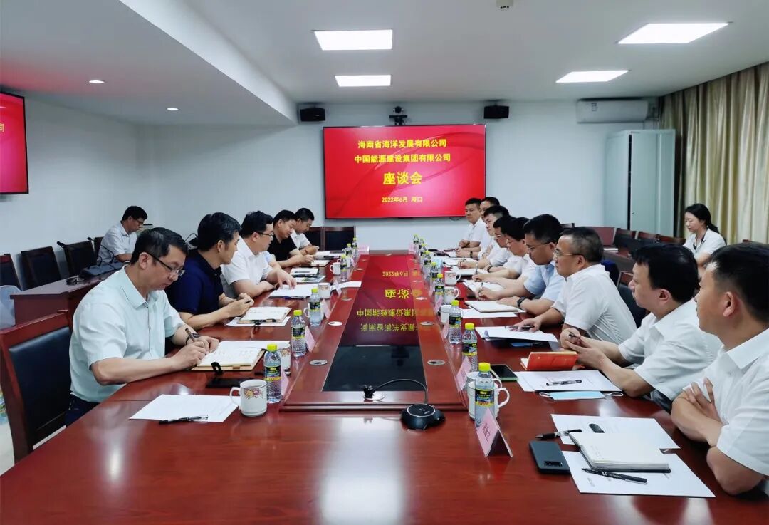 中国能建市场开发部副总经理司明,葛洲坝三公司党委书记、董事长胡义重,葛洲坝华南分公司执行总经理刘勇;海南海洋副总经理刘少明,智慧环投总经理张彬,双方有关单位、相关部门负责人参加会谈。