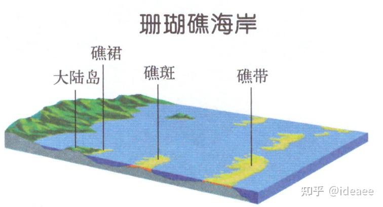 7 H; o1 H* `3 v 珊瑚礁海岸是造礁珊瑚、有孔虫、石灰藻等生物残骸构成的海岸。依其特征可分为岸礁、堡礁和环礁。 - q& I9 K3 m( Q4 G