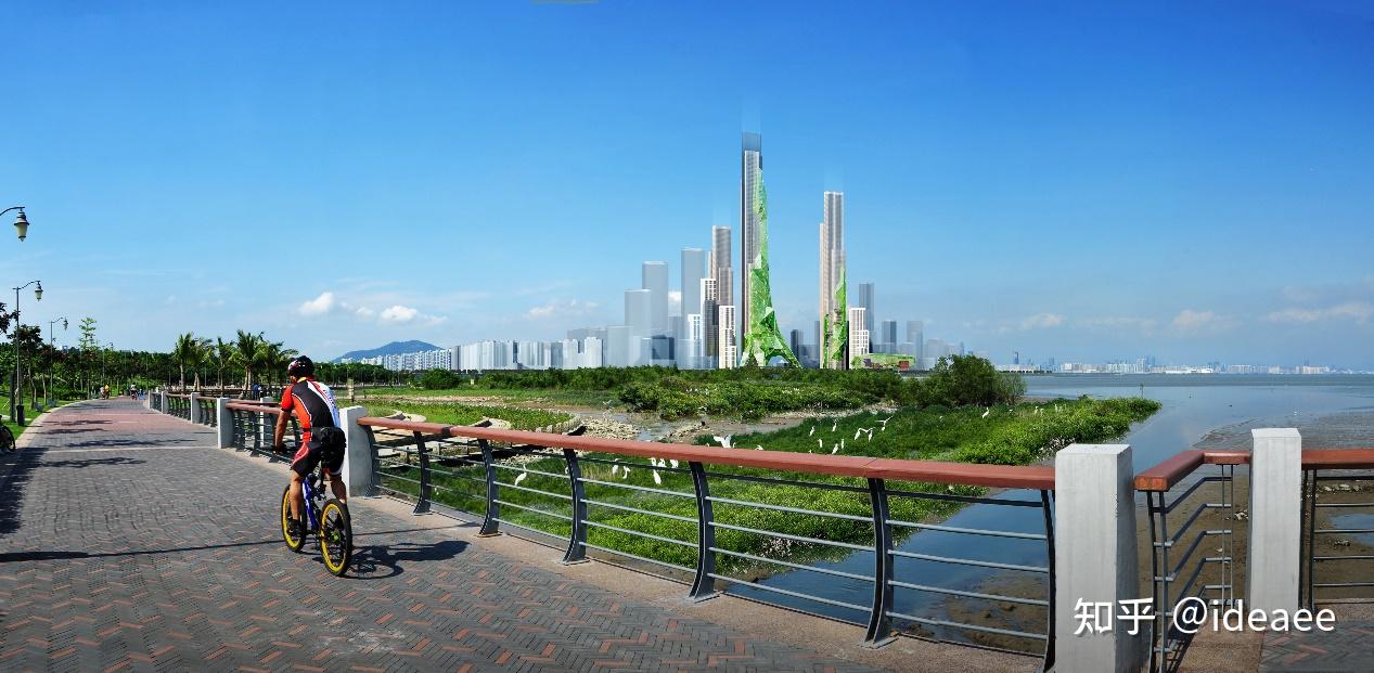 ; f9 p% h6 B" i. C7 ?7 G 上图我曾经参与过一个深圳某超级总部基地的竞赛项目,是用甲方提供的一张照片进行实景融入,这张图的前景就是红树林景观。 ! ~( e9 F) h4 x( h! a% Y8 m