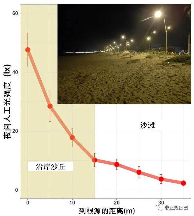 \* }+ \3 O* H' j, H; s" f 图3:城市前沙丘夜间人工光(ALAN)强度(lx)衰减;
