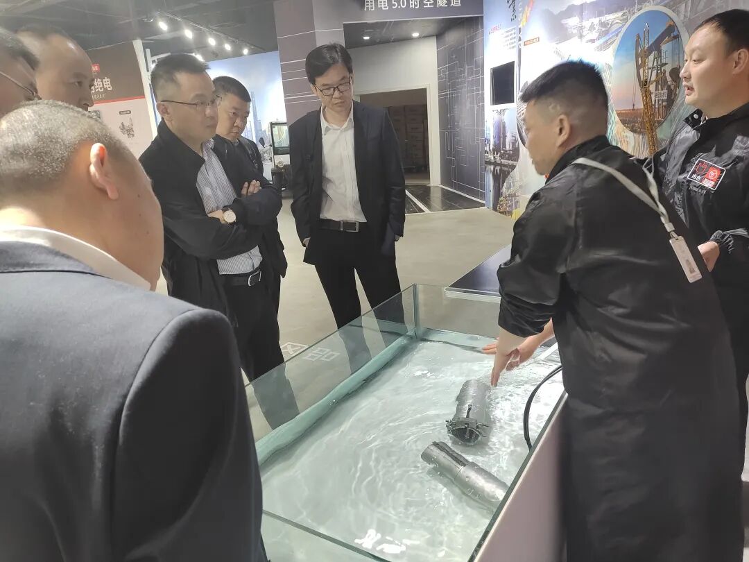 + `, |' ]$ Q- X" |0 ~, I& ` 在阿尔刚雷展厅,亨通考察团一行深入了解了5E电连接技术的技术原理及相关产品运用,阿尔刚雷技术中心人员针对5E电连接技术在深海连接器在海洋领域的运用进行了详细讲解。 海洋是一个极具挑战性的环境,电连接需要经受海水浸泡、深海压力等极端环境的考验。阿尔刚雷深海连接器采用5E电连接技术,可实现深海湿插拔连接,具有强大的抗压、耐腐蚀性能,能有效应对海洋环境的挑战。目前,模拟产品已通过1.2万米水压测试。 5E应用前景交流 : K/ l% d6 e6 N7 Z