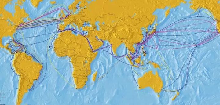 全球海缆连接示意图 " U' l3 `5 S1 P, F