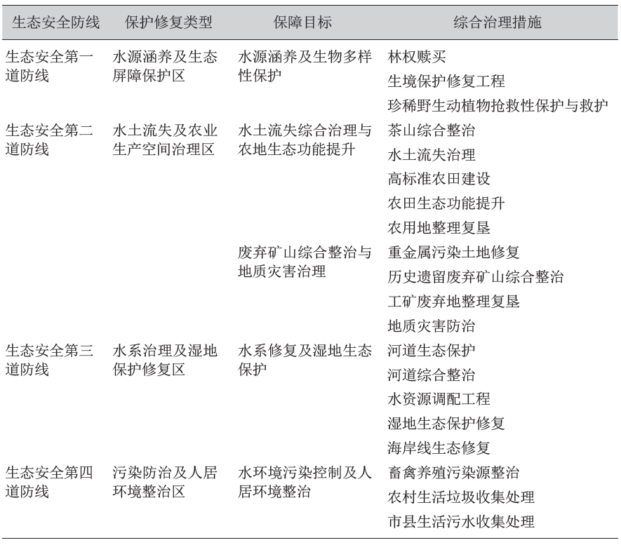 . M5 j+ D* Z3 W5 ^ 表2 四道生态安全防线与生态保护修复措施的关联