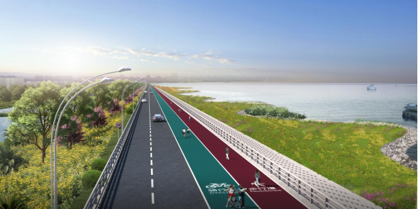 / Z! n8 q. Z4 h) L+ z3 _# E 多角度提升生活品质 在沿江沿海生态景观带建设工程实施之前,我区江海堤防标准基本只有五十年一遇,部分堤段甚至标准更低。在大力推进本工程之后,预计在2024年,我区将实现全区一线江堤的百年一遇达标贯通,防浪墙顶高程7.34米,堤顶高程6.84米,路面宽8至12米。景观带建设项目的实施,大大提升了全区堤防的防洪安保能力,能够更好的应对暴雨、洪涝等灾害性天气,为全区人民群众生命财产安全提供坚实的保障。我区将61.02公里江堤和22.4公里海堤按照企业段、城镇段、农村段三种不同的标准因地制宜进行打造,以生态建设为主基调,高标准建设长江生态保护、沿江沿海风光旅游示范带,并逐步将生产型用地和岸线转变为市民健身、休闲、观光、旅游的公共空间和生活型岸线,提升全线亲水性、畅达性、舒适性的贯通体验,打造集生态、绿色、活力于一体的城市客厅。建成以后,广大市民朋友又多了一个休闲娱乐的好去处,大大提升了人民群众的幸福感、满意度,而这也正是海门区委、区政府不断致力于改善人民群众生活品质最生动的写照!