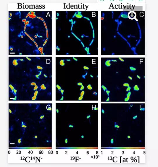 3 m4 P: [5 E2 \/ l# M. _ 热液喷口的微生物依靠化学合成的能量生存和生长,然后又返过来担当食物链最底端的供给者,为其它生物提供可以消耗的碳源。为了测量海底微生物群落的生产力,研究人员利用等压气密取样器(IGTs)在东太平洋隆起处一个被称为Crab Spa的热液喷口处收集了含有微生物的流体样本,该容器可以保持微生物生存的深海极端压力,防止流体里面的溶解气体泄露。实验室里,在保持着与深海环境相同的压力和温度的情况下,研究人员通过在样本中加入硝酸盐、氢气和氧气等化学物质,以测量微生物消耗特定化学物质的速率,以及它们如何有效地将其转化为生物质,这是决定微生物生态系统生产力的关键参数。为做到这一点,研究人员采用了一种分析方法,即纳米稳定性同位素质谱技术(NanoSIMS),结果表明一种被称为Campylobacteria的微生物,之前被称为Epsilonproteobacteria,是主要的碳生产者,而且部分微生物在几小时内数量增长了一倍,表明深海热液喷口是一个非常活跃的海底生物圈。下一步研究人员计划测量其他热液喷口处的微生物生产力,以改进本次研究中的评估数据。