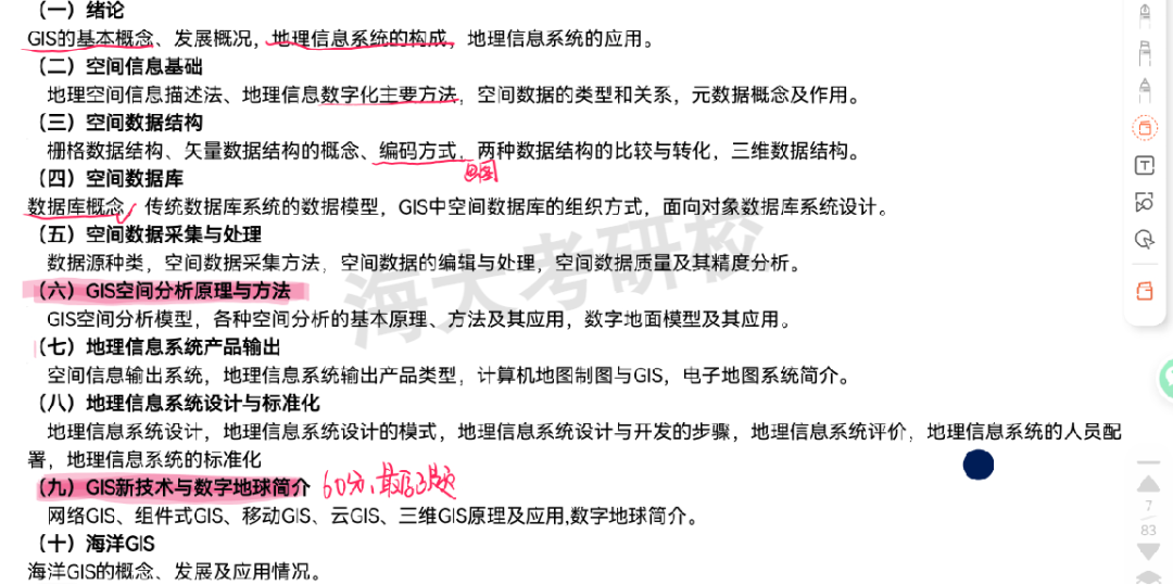 上图是808地理信息系统的官网考试大纲内容,我给大家划一下专业课复习的重点内容。 & Y% P5 g$ O, {. O1 k9 ~& z: d3 O, x