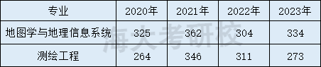 从上表中可以看到专硕一般情况下都比学硕分数要低得多,除了22年以外,地图学与地理信息系统的分数都是持增长状态,而测绘在23年分数下降了很多。