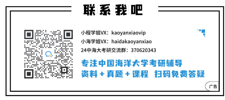 大家可以多关注咱们海大考研校的微信公众号,里面有很多学长学姐给会分享一些经验干货,同时也可以加入我们的24考研交流群:370620343,有任何备考问题都可以问群里的学姐。