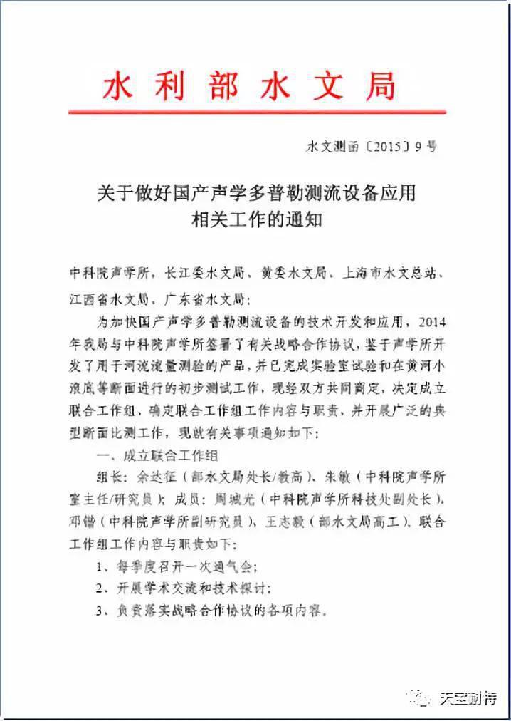 声学多普勒流速剖面仪(ADCP)是目前国际公认最主要的流场测量仪器,能对水流断面的流速剖面进行快速测量,在海洋、湖泊和河道流速测量方面得到了广泛应用。 目前国内使用的河流型ADCP完全依赖进口,不仅存在价格高、采购周期长,维修困难等问题,而且水文行业有极强的公益性、基础性、战略性,关系到经济安全、生态安全和国家安全。“国之重器要掌握在自己手里”,值得庆幸的是,在数年前,国内的中科院声学所、中船重工715所、国家海洋技术中心等单位便开始从事了ADCP的研发工作。 中科院声学所ADCP研发历程 自2012年中科院声学所率先研发出河流型ADCP产品RIV系列以来,已与进口ADCP产品进行了超过400次比测,足迹遍布几大流域水文管理机构,不论是长江黄河还是珠江赣江,在各种应用场景与进口产品进行比测。 部分比测试验 国家主管单位对ADCP国产化也给予了很大的支持: 部水文局发文支持 用实际行动支持 产品的性能较之进口的如何呢?我们随便拿出海量比测数据中的一个-上海松浦大桥站比测结果: 海量比测数据表明:由中科院声学所研发的ADCP在性能上与主要进口产品性能相当,测量成果精度满足《声学多普勒流量测验规范》要求。 “酒香不怕巷子深”,这不,CCTV向全国介绍了这值得骄傲的自主产品。 为向国内用户交付技术领先、性能稳定的产品,中科院声学所选择了有着军工背景的中船集团无锡海鹰来生产制造,并交由武汉天宝耐特进行市场推广及服务。 08月23日,武汉天宝耐特在江西南昌水文局又进行了一次与进口TRDI的ADCP产品比试测验。 进口TRDI 1200KHz测流结果为850.21m³/s,中科院声学所RIV 1200KHz测流结果为886.97m³/s,流量相差4.32%。由于2台设备的比测试验采用的是分时比测的方式,2台设备测量时间相差1小时,这可能造成流量上的差异。但是2台设备的流量差异整体控制在±5.0%以内,仍然符合《声学多普勒流量测验规范》(SL337-2006)的要求。 这样的比测非常多,我们再附一份由水利部水文局、长江委水文局确认的大型比测结果: 每一次比测,我们都满怀信心;每一场考试,我们都高分完成。