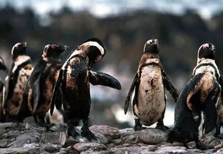 被石油污染的企鹅和海鸟。