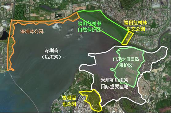 福田红树林生态公园在深圳湾的位置