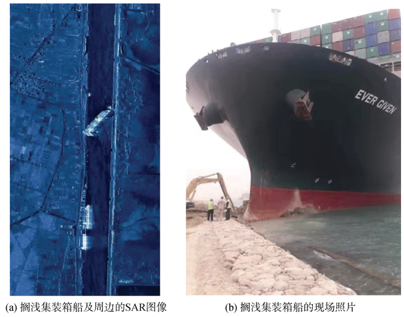 国内,SpaceTY(天仪研究院)和智星空间等公司也发布了SAR小卫星星座发展规划,SpaceTY公司已于2020年12月22日发射了我国第一颗商业SAR小卫星“海丝一号”,图1a为“海丝一号”于2021年3月25日拍摄的集装箱船搁浅导致苏伊士运河堵塞的SAR图像,图1b为搁浅集装箱船的现场照片。 8 d* o7 m/ t) W! P0 X+ L: g5 E