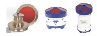 (左:船载ADCP;中:直读式ADCP;右:自容式ADCP) 从供电方式ADCP可以分为自容式ADCP和直读式ADCP自容式ADCP采用内置电池方式供电,数据一般存储在内部的存储卡中;而直读式ADCP采用外部电源供电,数据一般直接通过水密电缆输出。从测流算法ADCP可以分为窄带ADCP和宽带ADCP—般来说窄带ADCP测量距离较远,但单次测速方差较大;宽带ADCP单次测速方差较小,但测量距离较近。