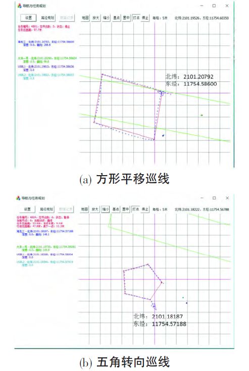 - L* \3 `3 N2 M ⑵重点测试了定深、定高模式下的矩形、梳型、五边形近底巡线功能:预输入巡线轨迹,在近海底切入巡线控制模式,记录航行数据,同步记录数据,分析其巡线控制功能的有效性。