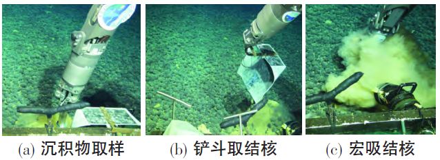 ⑷在海底进行了机械手和取样机构(沉积物/海水保压取样器、宏生物取样器、水下切割工具)的测试和操作,获得了丰富的样品。