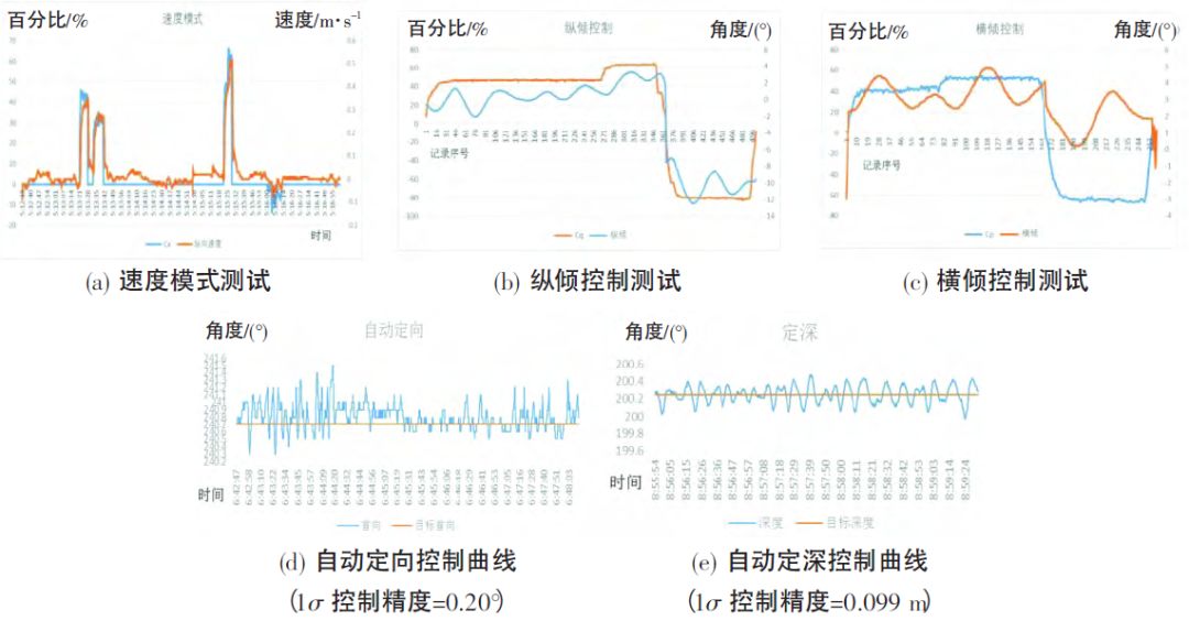 2 Z8 j7 F7 `2 ]% p: Z ⑴测试了ROV的基本自动控制功能,ROV浮游到达预定深度,在近海底依次完成各自动控制功能测试,包括纵横倾调节、速度预测控制模式,以及定向、定高、定深等常规运动控制功能,用仪器连续记录试验过程中航速、艏向角、纵倾角和深度等参数,同步手动记录数据,分析基本自动控制功能的有效性。