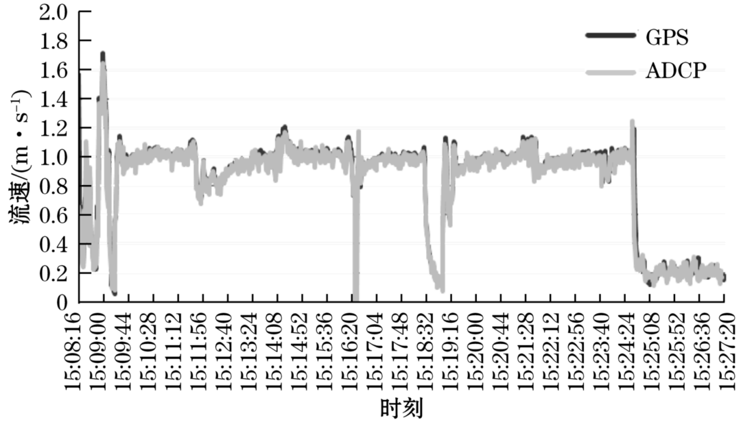 试验过程中,GPS-RTK测得结果与被测ADCP测得流速数据的对比如图4所示。 1 z/ |: p/ [( j# d