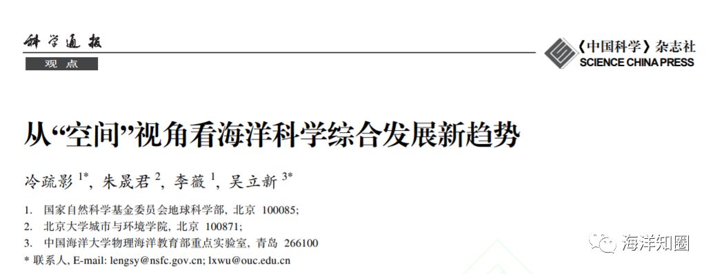 将地球科学对海洋过程的研究视角与资源环境科学对海洋效应的研究视角紧密结合,促进海洋科学对地球过程的深入理解和对海洋空间 综合认知水平的提高.将海洋物理过程、海洋化学过程、 海洋生物和生态过程以及海洋地质过程研究与气候变化、 海洋环境保护、深海能源资源形成演化与利用、海洋生物 资源形成演化与利用、海岸带与海岛可持续发展、海洋经 济政治与全球(空间)治理战略研究融合发展,并着力加强 海洋遥感与资源环境信息系统研究、深海大洋观测与探测 技术研究, 继续为科学基金海洋研究项目提供稳定、可靠 的坚实保障, 推动海洋科学调查资料和数据共享. —END—信息来源:中国科学杂志社 《从“空间”视角看海洋科学综合发展新趋势》 (有删减) 作者:冷疏影 , 朱晟君 , 李薇 , 吴立新 ) F- |( K) @ @. ?9 F3 l0 P