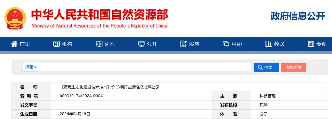 8 C1 i8 a3 i% i 《海堤生态化建设技术指南》等35项行业标准报批稿 公 示: U! M" i. _1 d3 D& o8 c& U" _