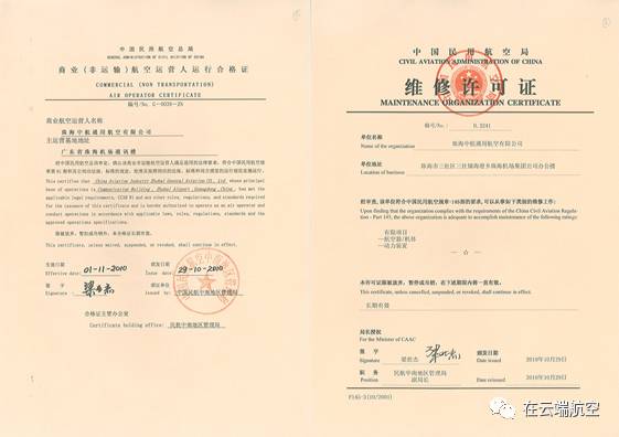 2010年4月25日,珠海中航通航取得民航中南地区管理局《通用航空经营许可证》,5月25日取得企业法人营业执照,11月1日取得《商业(非运输)航空运营人运行合格证》珠海中航通航正式开始运营。 ' A5 e& B+ r* T9 U, r1 t# r
