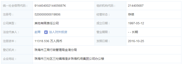 ' q; L/ H9 F% d1 C 在《2017年通航专项资金预算方案》中珠海中航通航获得补贴总额260.82万元,全国排名第26,拿到补贴的公司一共136家。 珠海中航通航基本信息, i" e" Z$ h5 ]' K$ R