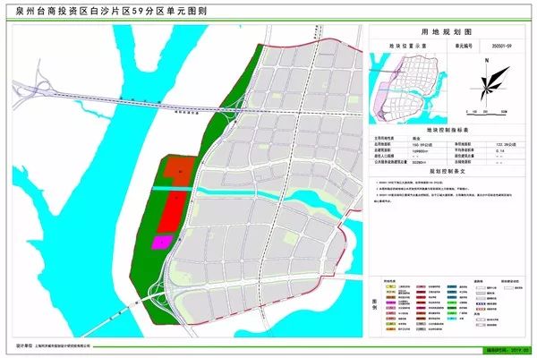350501-59分区单元是泉州市划定的晋江-洛阳江分区单元,本规划区涉及350501-59分区单元的F基本单元,范围为本规划区内海江大道以西的全部区域,总用地面积为150.59公顷,包括洛阳江东岸的沙滩、滩地、公园绿地以及已批在建的嘉信游艇项目。功能定位为:台商投资区重要的生态湿地景观廊道,以生态休闲及娱乐康体为主导功能的生态单元。总建设量为16.98万平方米。 2 `. d H7 d5 S" r5 n