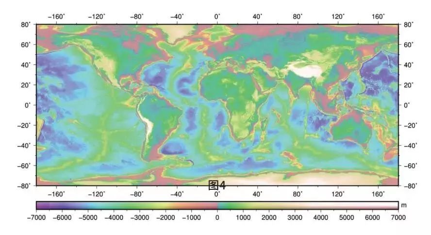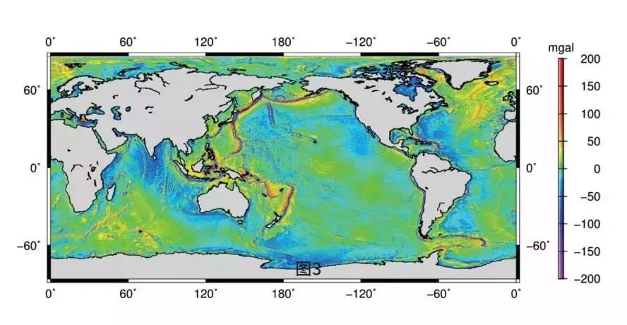 图3 1′×1′全球海洋重力异常 C: Y& ~- m( i3 ~; j6 o3 W