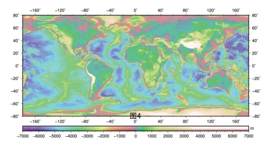 3 n+ m& d2 W$ ^7 W7 \8 G; X* p2 S 图4 1′×1′的全球海底地形模型 - v" u( J1 G" W1 [3 k