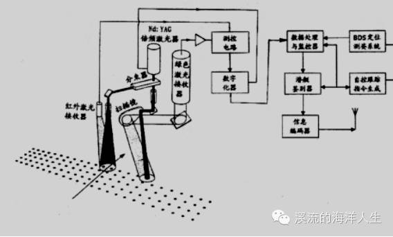 ②船载蓝绿双色激光测距子系统,它同时发射的4束激光,分别射向安置在海底的4个带激光后向反射镜阵列的自动深潜站,用以同时测定海面船只至4个自动深潜站的距离。 - i4 [+ H8 q+ x; `* W: N