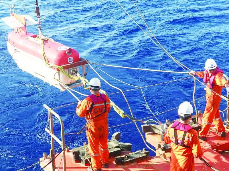 第3次释放信号发出后,搭载在着陆器上的超短基线信标显示着陆器离底高度有了变化,这意味着陆器抛载成功开始上浮。8时30分许,远处一块“橘子皮”在海面若隐若现。杨源介绍,“橘子皮”是搭载在着陆器上的玻璃浮球,为着陆器提供上浮的浮力。