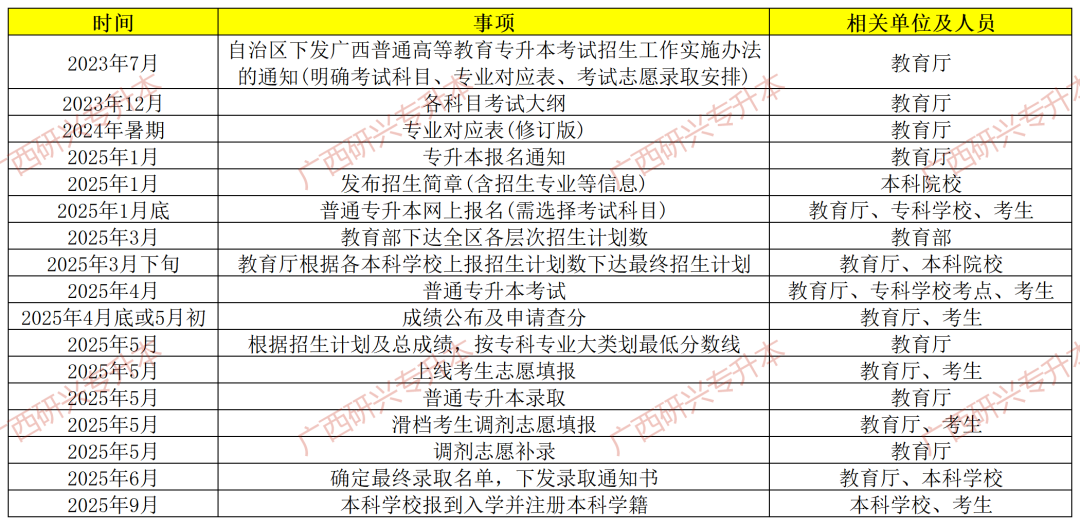 0 k/ s% j$ U) ]" ~% B 五、2025年广西壮族自治区普通高校专升本考试时间安排表(预计) * K/ D8 G) v4 T. R8 }* v0 _