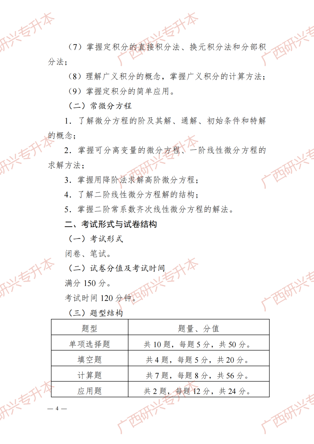 4 |, L' `3 d% d0 r" I: h 广西普通高等教育专升本考试 ; z$ _+ o" Y! b' A