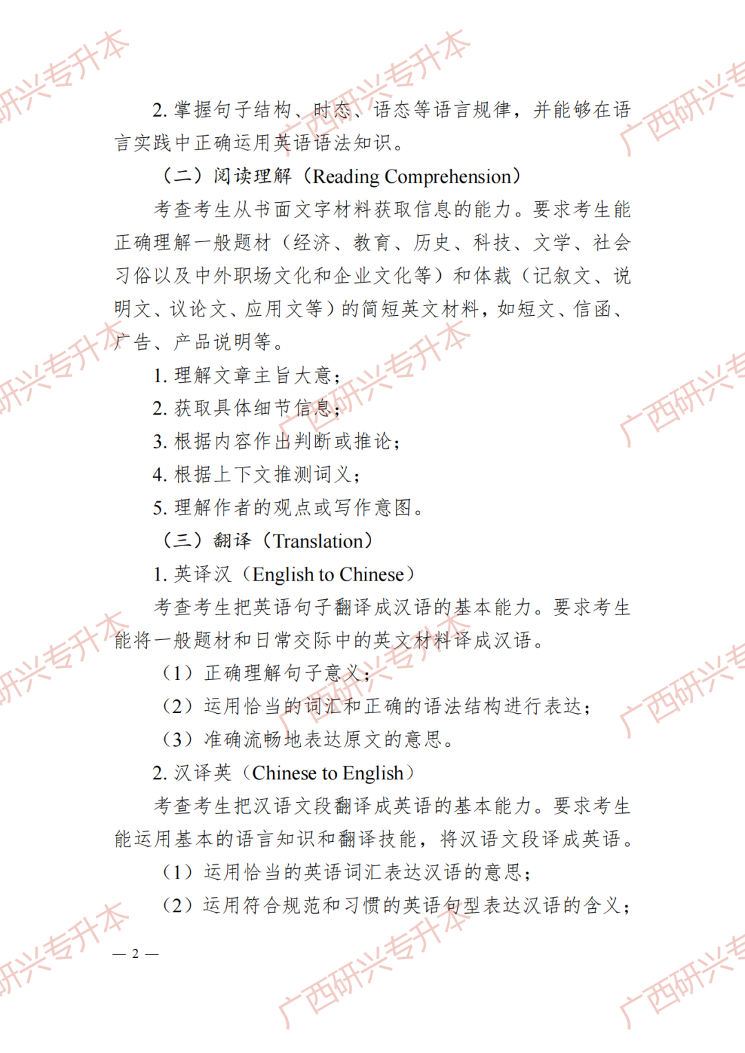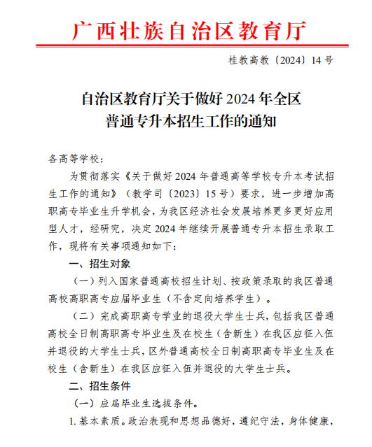+ N+ a7 X# L0 N; h8 V 根据《自治区教育厅关于广西普通高等教育专升本考试招生工作实施办法的通知》以及《自治区教育厅关于做好2024年全区普通专升本招生工作的通知》两个权威文件,广西研兴专升本老师整理出广西普通(统招)专升本各专业对应报考指南,供考生复习备考前提前查阅, Z4 s" W0 x1 O* D9 V n1 }