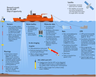 3 i8 L- x R% ^9 A" p$ Z8 e( B& W* C 2、ADCP也可以用于海洋生态学的研究中,将传统采样方法与现代采样技术相结合。利用ADCP的回声定位原理,结合原位成像(例如 PlanktoScope)的自动传感器、水下视觉轮廓仪 (UVP)等仪器可以对大面积海洋区域进行高垂直和水平分辨率地采样[2]。并且ADCP本身能够测量剖面流速,可以进一步帮助研究海洋中生物比如浮游生物的大规模运动以及海洋中沉积物的输运等。 * i0 _" f, y$ Y j G