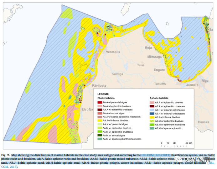 9 D4 L6 X N; n$ J, U 图2 案例研究区海洋生境分布图 - k: G9 T: X' u) H