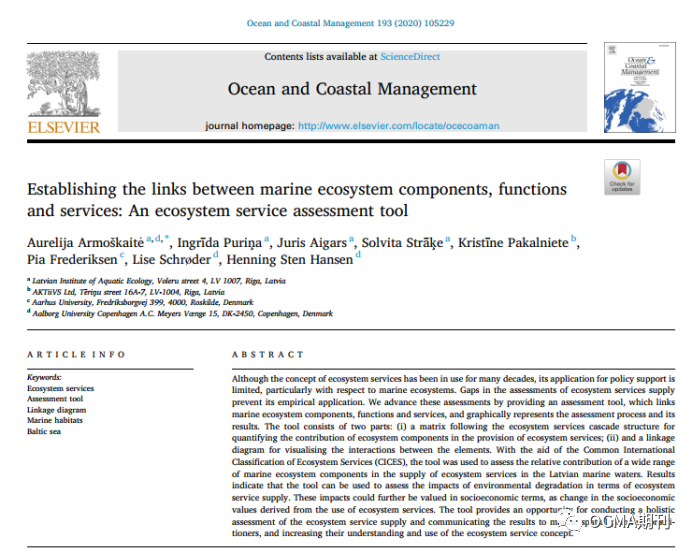 & _- N1 t& B3 N. ~& O 文章发表于Ocean and Coastal Management 193(2020)105229 ( r7 t+ R0 j+ ?- H3 h# m T